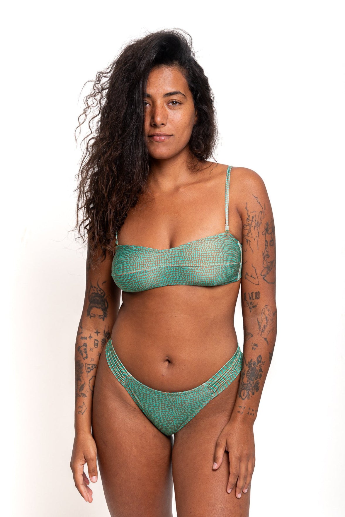 Possui maior cobertura nas laterais para nao marcar o quadril mas e nas costas e fio duplo, asa delta .