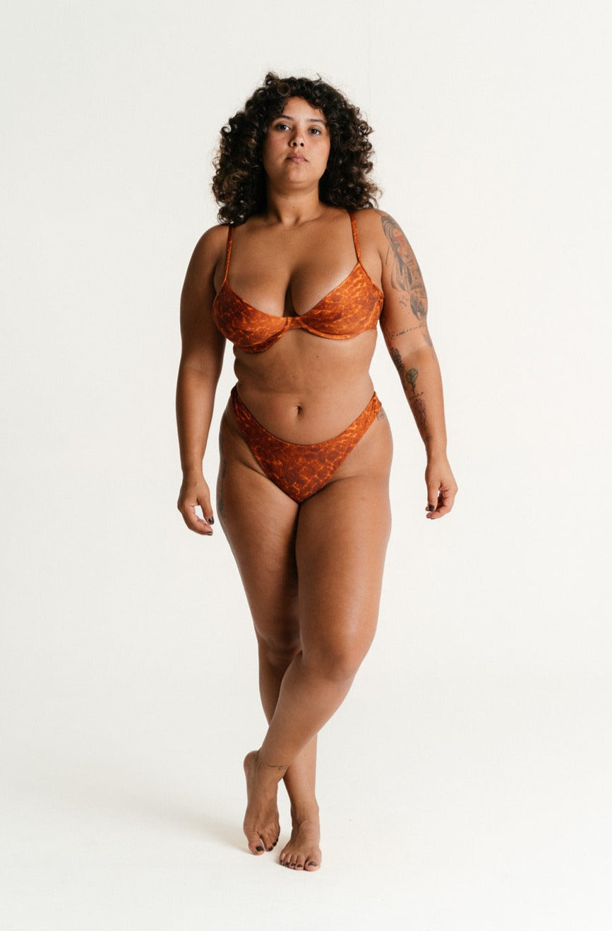 Biquíni asa delta. Alonga visualmente as pernas e a silhueta de forma elegante. Personalize a altura da cintura para combinar com seu estilo.  Estampa exclusiva. ...