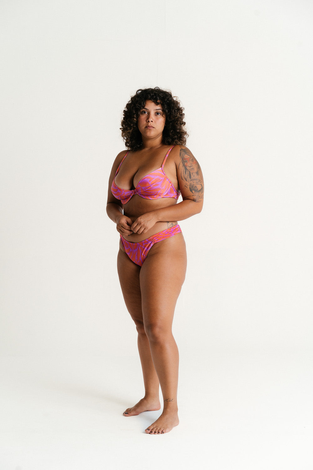 Possui maior cobertura, as laterais franzidas permitem ajuste para mais fino ou mais largo conforme sua preferência, não marca o quadril.  Estampa exclusiva. Cobertura média. Toque...