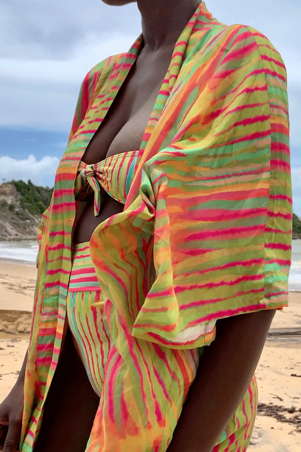 Kimono feito de viscose certificada. Peça versátil que pode ser usada como saída de praia, vestido, blusa.  Estampa Exclusiva. Tamanho único, acompanha faixa. Toque macio...