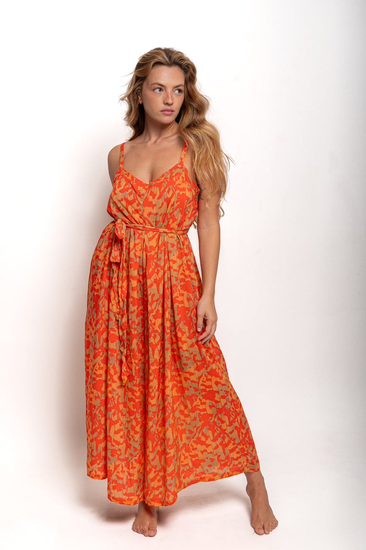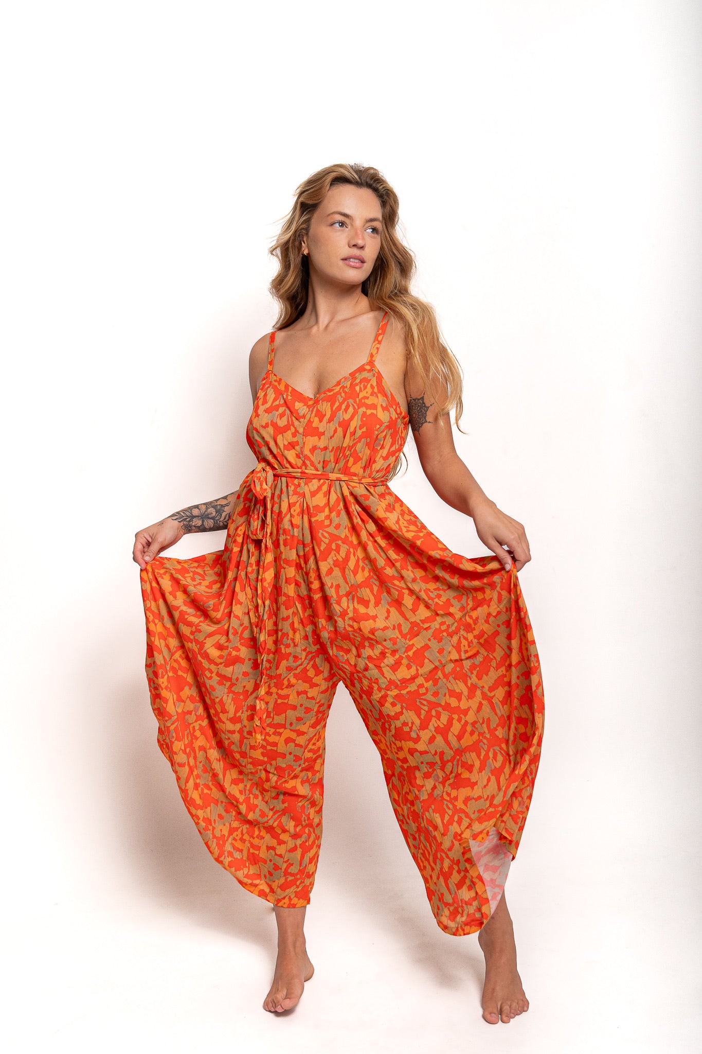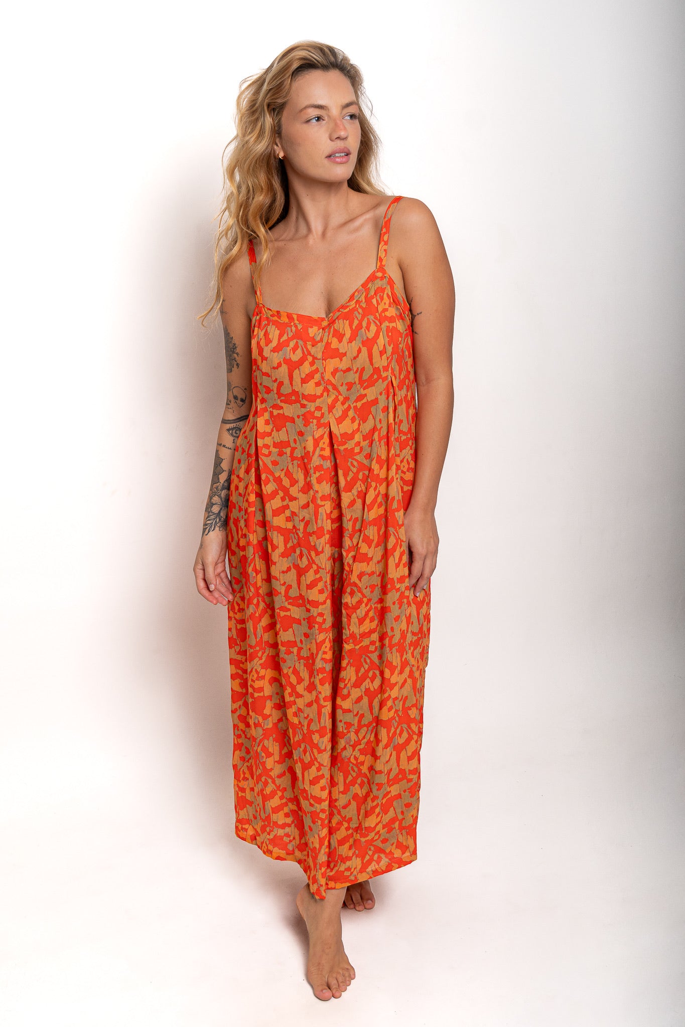 Macacão feito de viscose certificada. Modelagem com caimento perfeito, recorte solto para trazer leveza.
