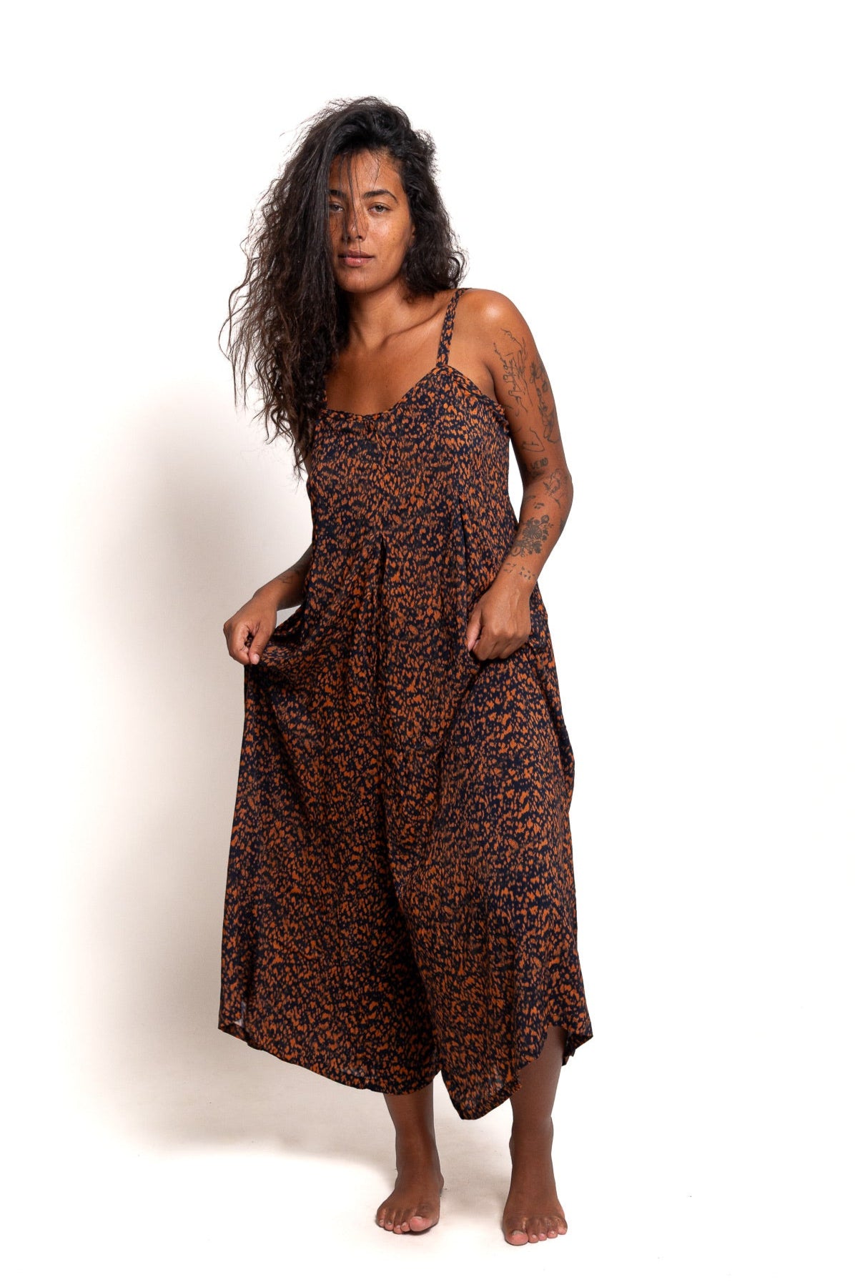Macacão feito de viscose certificada. Modelagem com caimento perfeito, recorte solto para trazer leveza. Estampa Exclusiva.   Alças ajustáveis com regulador, fecho nas costas com botão. Toque...